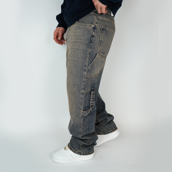 شلوار جین مردانه بگ استایل بدون زاپ - جیب نجاری - کد 1018504