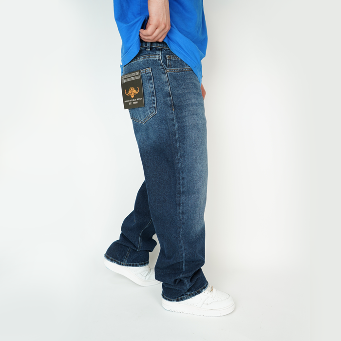 شلوار جین مردانه بگ استایل بدون زاپ - کد 1018005