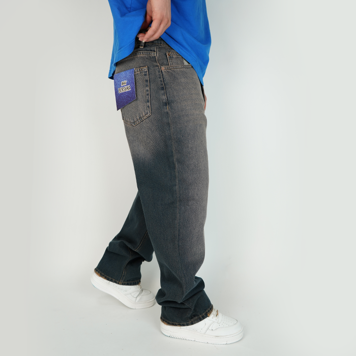 شلوار جین مردانه بگ استایل بدون زاپ - کد 1019304